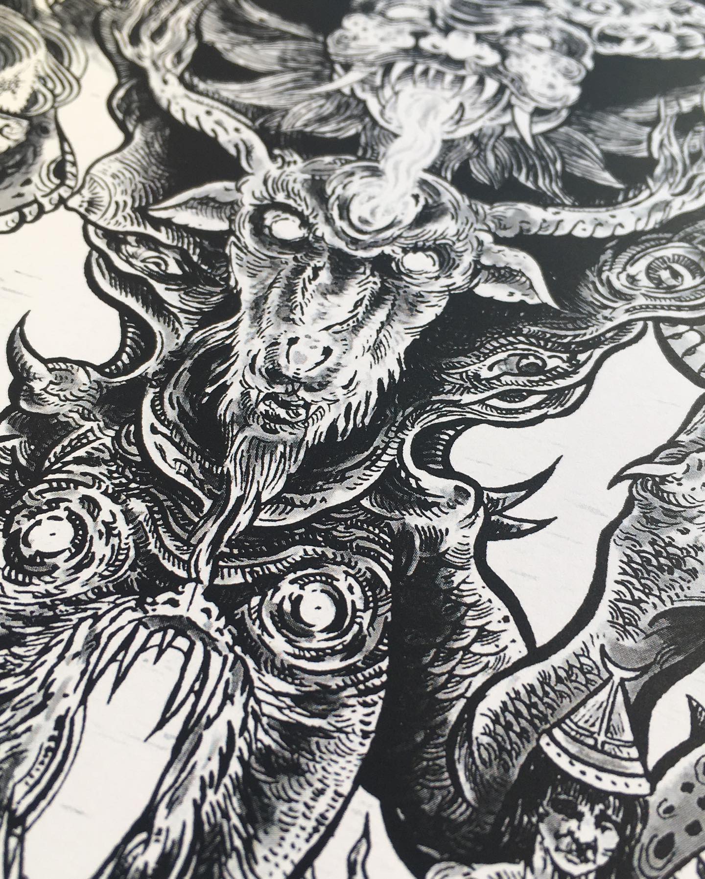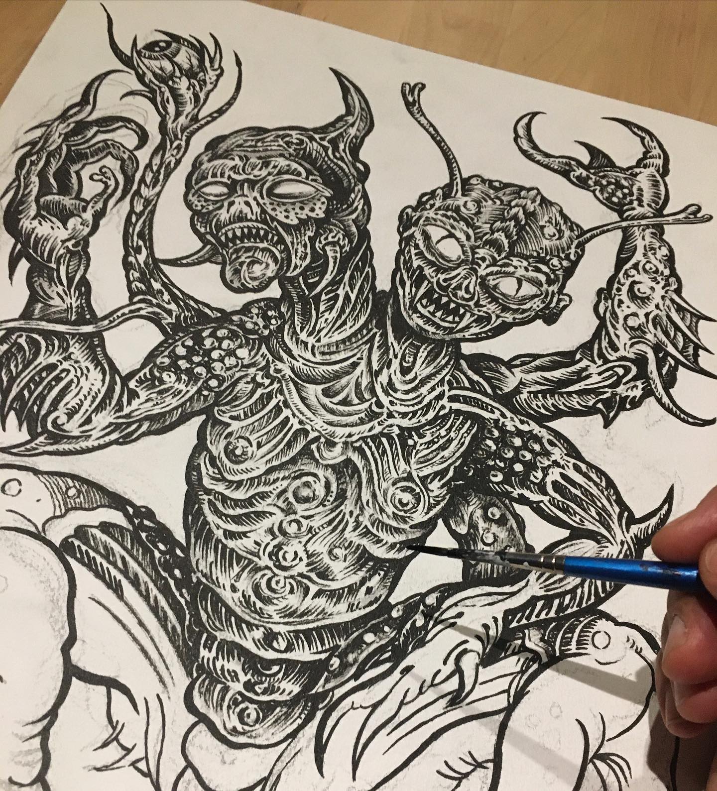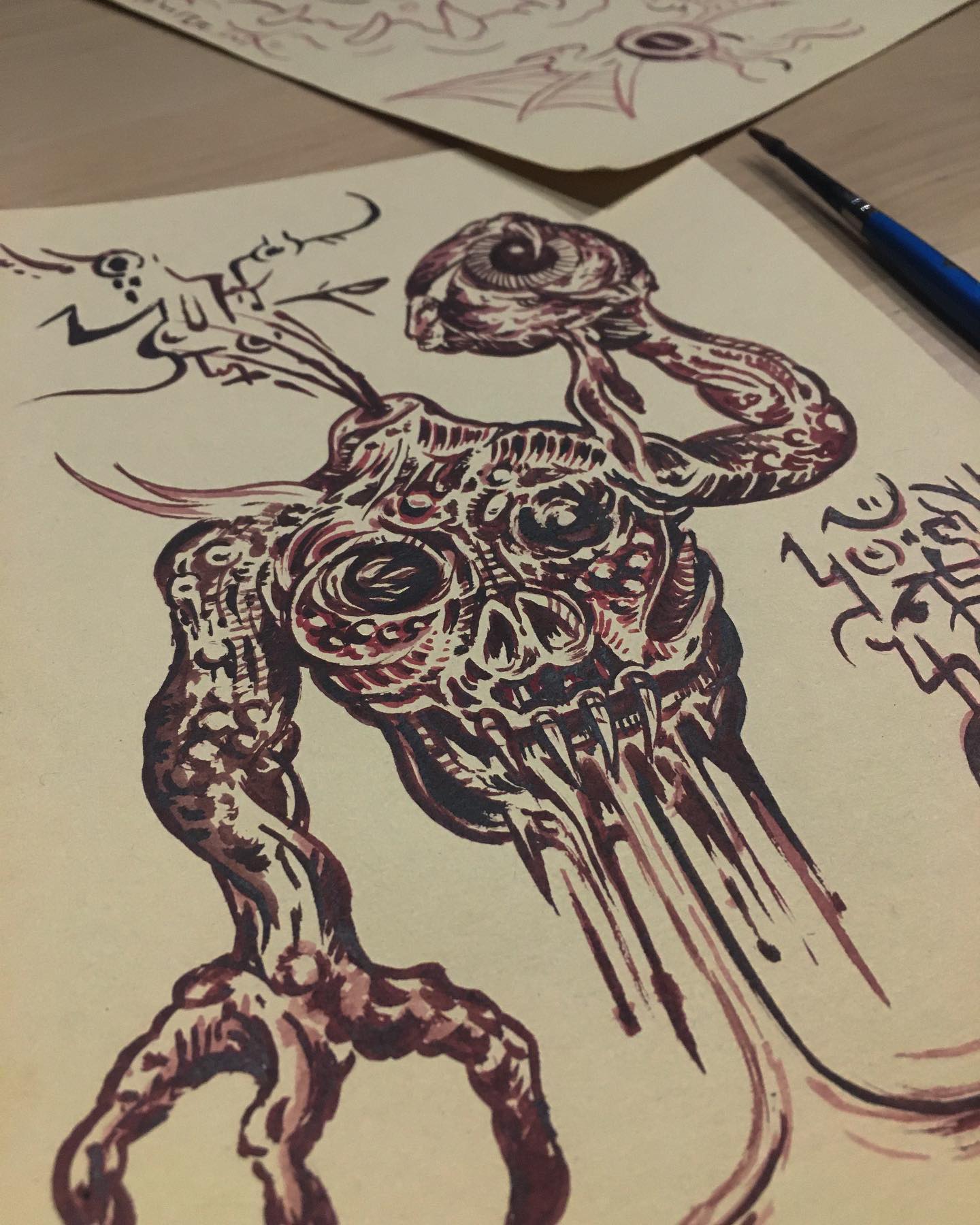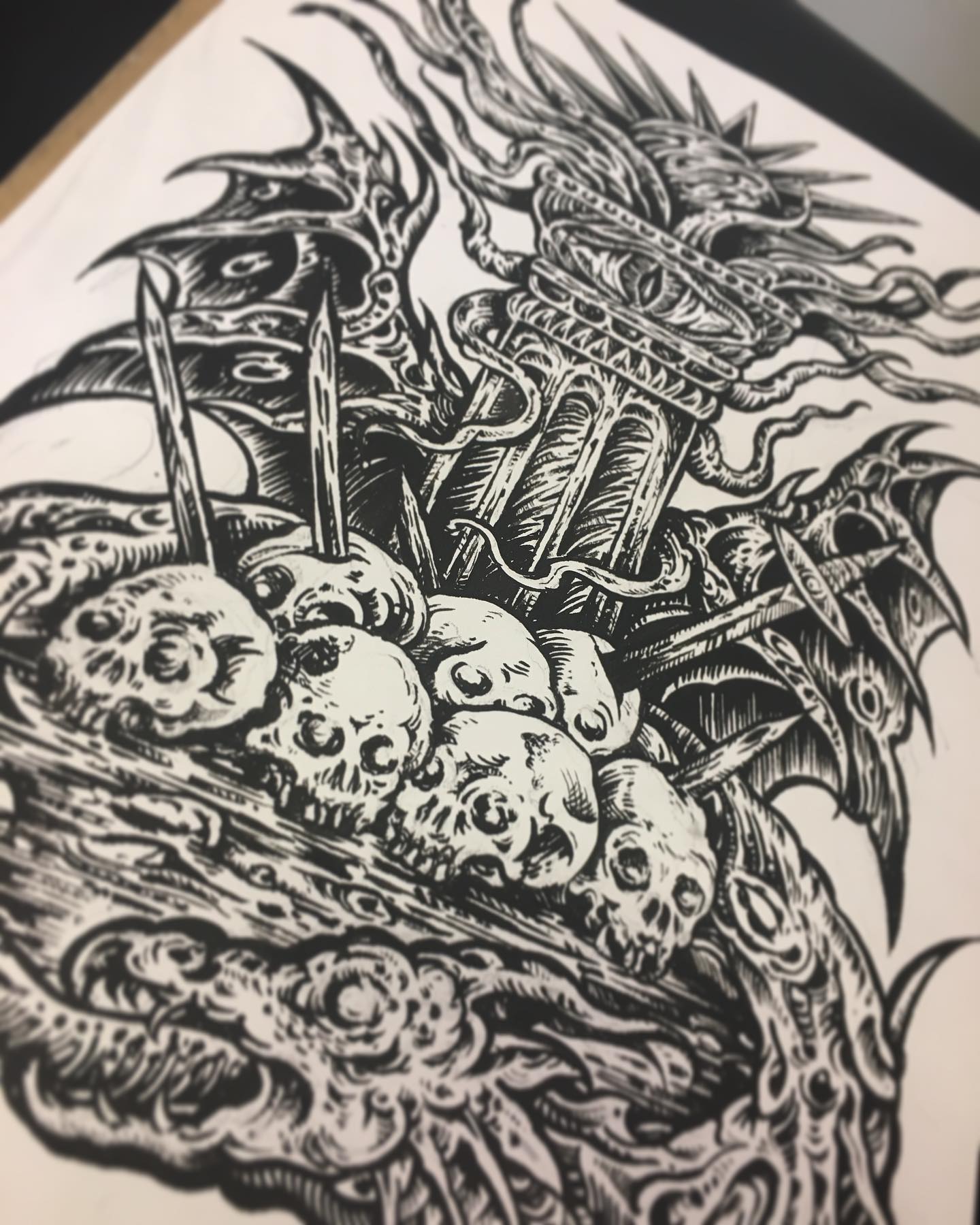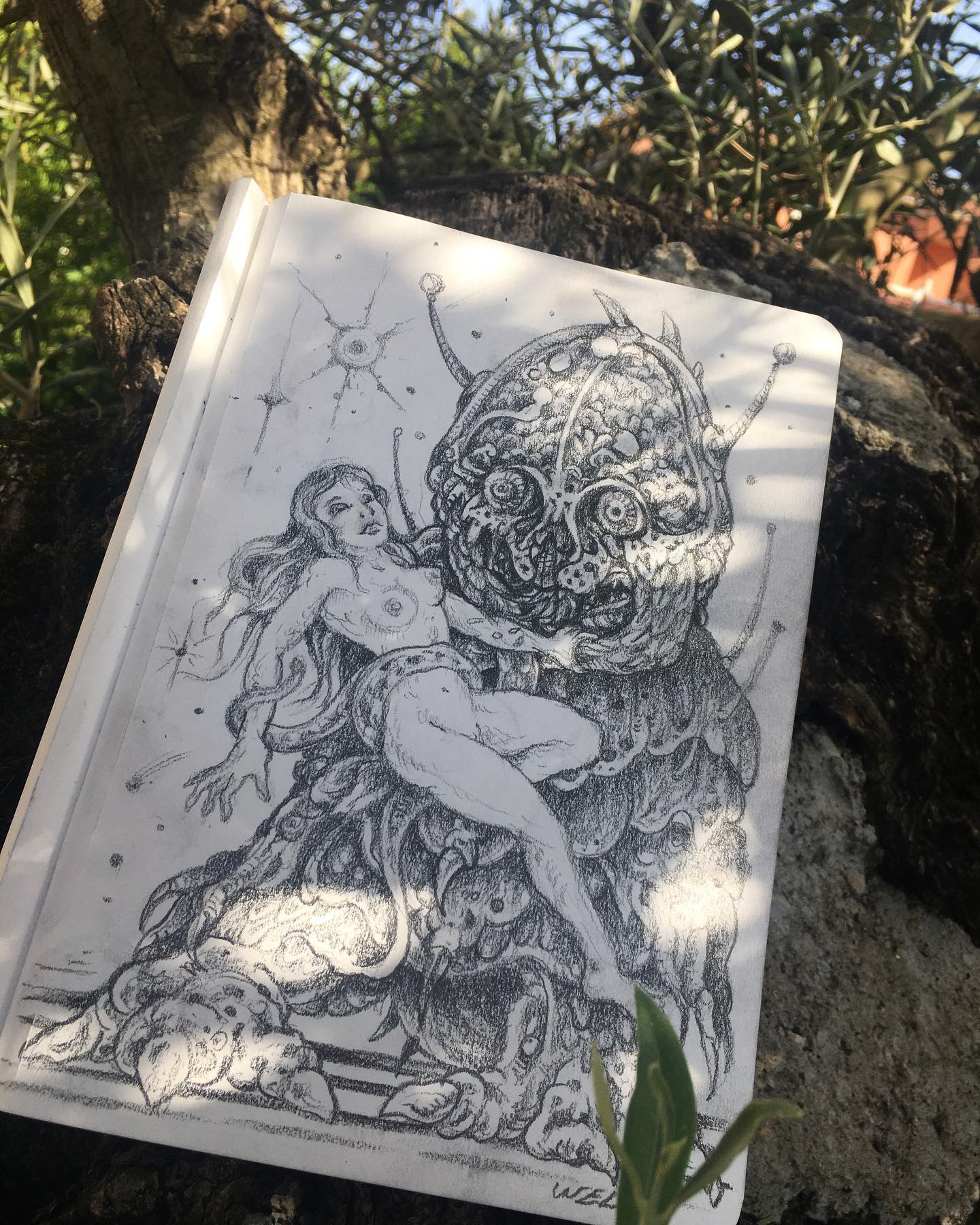 Welt also creates works adaptable to merchandise of various kinds, selling both original art and only print files (for T Shirts, Bags, Logos, posters, etc). In addition to the private client, his artistic production has also been used by the likes of Slayer, Autopsy, Profondo Rosso Store, Saint Vitus, Goblin Claudio Simonetti and many others.